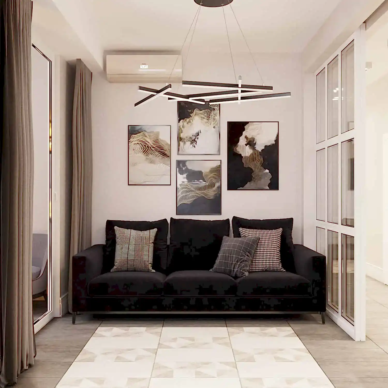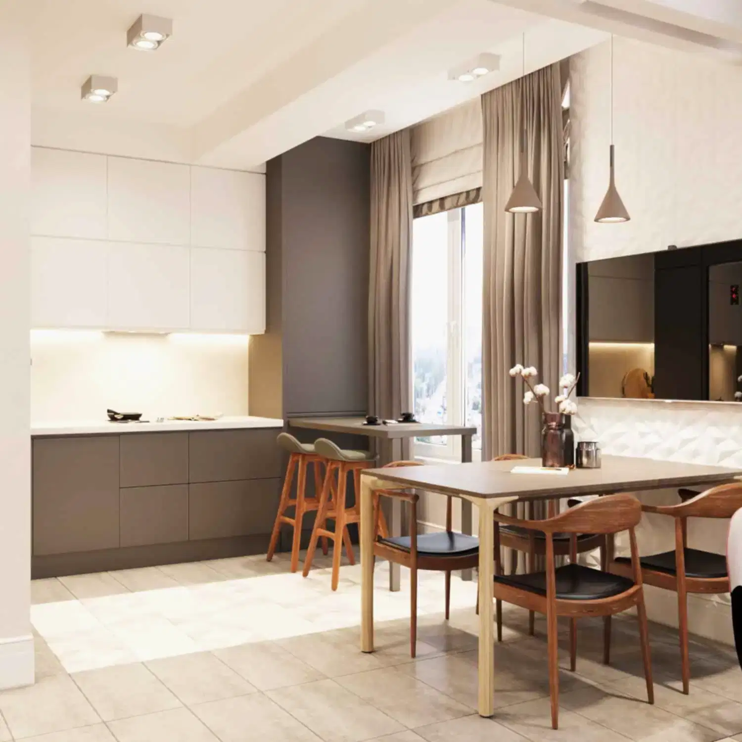 Для Pin-Up гостей мы поставили дизайнерскую перегородку, которая разделила кухню-гостиную на 2 больших зоны. Это очень удобно, при размещении гости не будут мешать друг другу🎀.